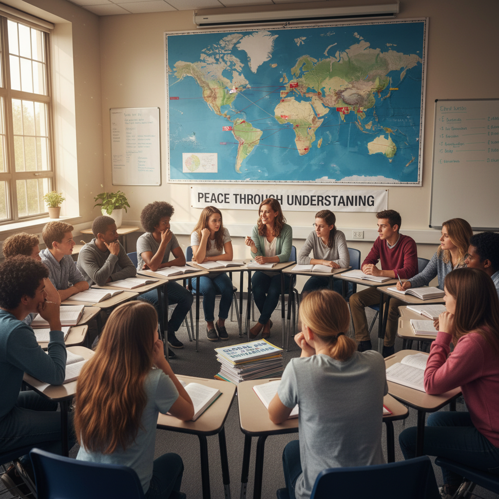 The Gates are our structured educational framework with eight pathways: Awareness (understanding conflict and information systems), Empathy (exploring human stories and building perspective), Understanding (learning war's roots, triggers, and global effects), Action (taking informed steps that reduce harm and support peace), Responsibility (practicing ethical decision-making in how information is shared), Collaboration (working together through dialogue, mediation, and cooperation), Prevention (building resilience and preventing escalation before it begins), and Global Perspective (connecting global issues and learning from diverse regions). Each gate builds critical thinking about conflict and food security.